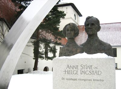I 2001, to måneder før Ingstad døde, ble et minnesmerke over Anne Stine og Helge Ingstad, utført av Nils Aas, avduket av kong Harald utenfor Vikingskipshuset på Bygdøy i Oslo. Minnesmerket har teksten De oppdaget vikingenes Amerika.