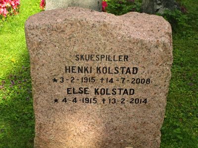Henki Kolstad er gravlagt på Vestre gravlund i Oslo. Tittelen Skuespiller er benyttet på gravminnet.