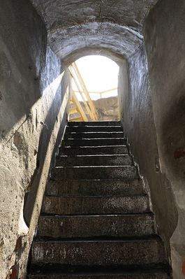 I fjellanlegget gikk en gjennomgående gang forbi ammunisjonslagere og forlegning, innerst i gangen var det en trapp opp til kanonene.