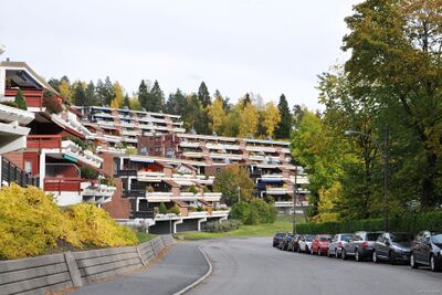 42A–E 1991–1993 Terrassehus Fem terrassehus oppført av Moderne Bygg AS etter tegninger av Arkitektene Bøhn & Rønning Oslo Hoffsjef Løvenskiolds vei 42A-E 250726.jpg
