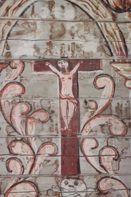 Krossfestingsmotiv i koret i Holdhus kyrkje, tømmerkyrkja etter 1726.