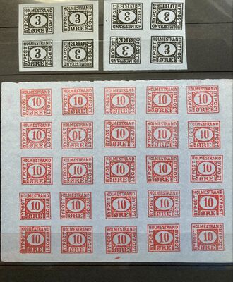 I juni 1888 ble det ekspedert rundt 50 forsendelser. Taraldsguttene i N. Kleiv var anbetrodd ekspidisjonen. Boken fra Stian Sanness utga i 1944 om Norges Bypostmerker står det at det ble utgitt 8 forskjellige merker. (11 med varianter). Noen av 10 øresmerkene merkene har verditallet trykket opp ned, mens det i arkene med 3 øres merker finnes noen Tête-bêche - med et merke trykket opp ned. Bokens forfatter Stian Sanness antyder at disse merkene neppe har vært i bruk i Holmestrand. Han kaller også det som det også eksisterer ark med alle verdier sammen og makulatur i ulike farger for ren svindel. Så sent som 1. desember 1888, bare en måned før byposten stengte, ble den siste frimerkeserien i Holmestrand gitt ut. Det ble også trykket konvolutter på forskjellig papir og laget noen brevkort.