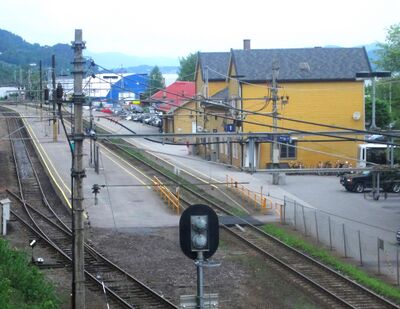 Sporet ble anlagt over den gamle kirkegården og den første stasjonen lå 4,8 meter over havet, og ligger 86,09 km fra Oslo Sentralstasjon.