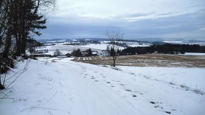 Utsikt vestover fra Hombsgutua. Midt på bildet skimtes Homsgardene.