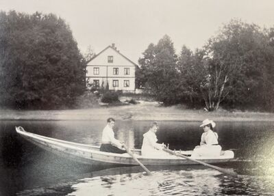 Her ser man hvor nære hovedbygget ligger den flomutsatte Glomma. Foto fra det sene 1800-tallet.
