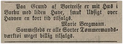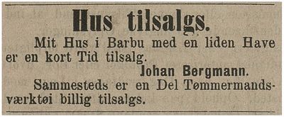 I 1893 annonserer Johan Bergmann i Barbu losji for 1 eller to personer.[4]