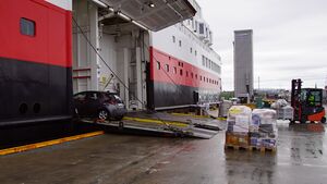 Etter samtaler mellom departementet og rederiene, endte man på en løsning med sideporter for innlasting med truck og paller. Vekten på godsbefordring gjorde at skipene fikk et åpent lastedekk og kran på akterskipet. Designet tillot frakt av containere, som gikk på bekostning av arealet tilgjengelig for passasjerer. Allerede sommeren 1983 ble det klart at skipet hadde for liten passasjer-kapasitet, og i 1988/89 ble skipene bygget om, Personbiler benyttet sideportene og plassert i eget rom under dekk. På det åpne akterdekk var det montert 15-tonns kran og plass til 22 20-fots containere.