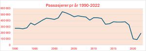 Etter at en delvis flåtefornyelse ble gjennomført 1982/83, stabiliserte passasjertallet seg i underkant av 300.000 pr år ut 1980-tallet. Et bunnivå kom i 1988 med 250.000 passasjerer. Det steg igjen til 276.000 i 1990. Ny vekst i tilskuddene kom midt på 1990-tallet, med introduksjon av mer turisttilpassede skip..