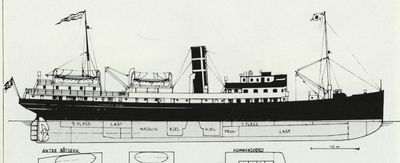 | D/S Lyra | BDS | 1905-1912 | 56.6 | 8.6 | 784 | 230 | 750 | 11.5 |
