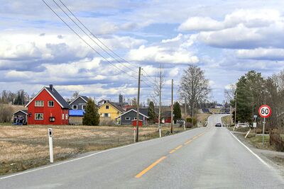 Parti fra Hvamsvegen med landbruksskolen i bakgrunnen.