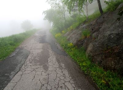 Motiv fra Hvitveisbakken i Oslo en tåkefull junidag.