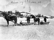 - Isskjæring Nesøytjernet, Asker.Foto: Anders Beer Wilse/Nasjonalbiblioteket (1912).
