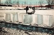 Virksomheten her startet i 1852 og varte i nærmere hundre år. En begynte å skjære isblokker om vinteren og oppbevare dem i ishus, isolert av et tykt lag sagmugg. Når varmen kom begynte transporten fra ishusene til kunder i store deler av Europa, en tid også så langt som til Middelhavet, Algerie og Tunis.