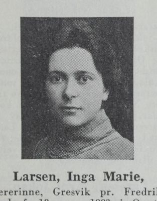 Inga Marie Larsen (født 18. november 1883 i Onsøy, død 19. januar 1953 i Gressvik) var lærer. Hun var utdannet ved Statens kvinnelige industriskole i Kristiania, 1903 og hadde eksamen fra Holmestrand lærerskole 1909. Inga Marie var lærer i Onsøy kommune 1909-1919, senere på St. Croix skole i Fredrikstad.