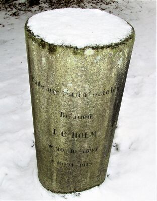 I østkanten av den vesle parken ved Farrisfabrikken i Larvik står en bauta med bronserellieff av dr. Holm.