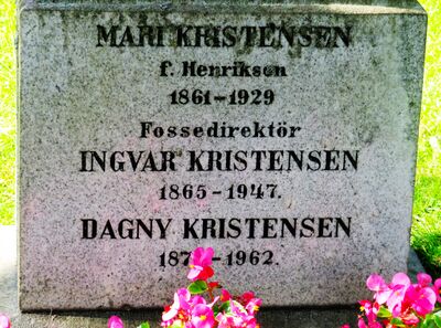 Ingvar Kristensen er gravlagt i familiegrav på Gamle Aker kirkegård i Oslo. Tittelen fossedirektør er benyttet på gravminnet.