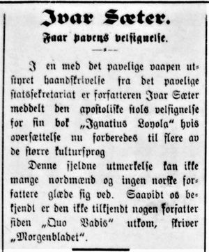 - Salmonsens Konservationsleksikon, oppslag Sæter, Ivar, bd. XXII, København 1927.
