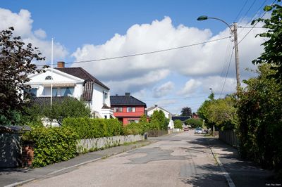 Bebyggelsen til veien består stort sett av eldre villaer.