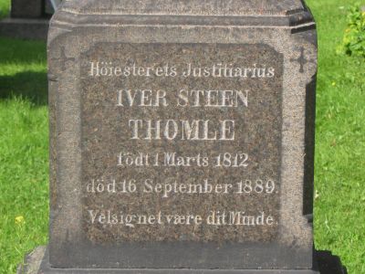 Iver Steen Thomle er gravlagt på Vår Frelsers gravlund i Oslo. Tittelen Høiesterets Justitiarius er benyttet på gravminnet.