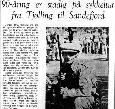 - 90-åring er stadig på sykkeltur fra Tjølling til Sandefjord i Sandefjords Blad 1971.01.02. Digital versjon på Nettbiblioteket.