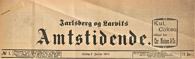 Avisa ble grunnlagt av boktrykker Hans Christian Hansen, og første nummer utkom 4. januar 1834. Senere ble den eid av Andreas Lerche. Lauritz Schmidt solgte avisa i 1892 til sønnen Olaf Schmidt. I 1898 gikk den over til et aksjeselskap. Jarlsberg og Laurvigs Amtstidende ble morgenavis i oktober 1918 og var den første avis i Larvik som fikk rotasjonspresse.