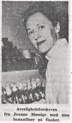| Genetiker Jeanne Coyne Mossige døde 16. mai, i en alder av 81 år. Hun levde et sjeldent aktivt liv helt til sin siste dag. Noen få timer før hun døde hadde hun hatt gleden av å høre en fin konsert i Konserthuset. ... Gjennom sitt arbeide fikk hun venner for livet, og var omtalt med respekt og beundring. ... Jeanne Coyne Mossige hadde alltid åpent hus. Hennes velsmakende middager husker mange med glede. Jeanne Mossige var meget beskjeden på egne vegne, mens hun var kompromissløs når det gjaldt faglige problemstillinger og troen på det som var rett. | ||