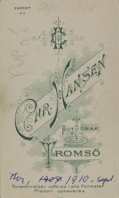 - Chr. Hansen i folketelling 1910 for Tromsø kjøpstad fra Digitalarkivet