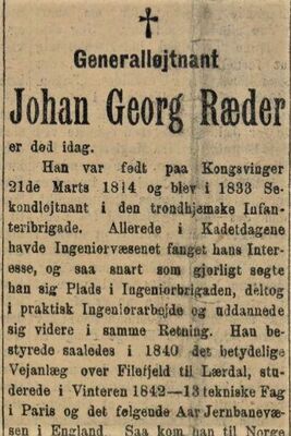 - Dagbladet 1898.01.04. Digital versjon på Nettbiblioteket. Nekrolog over Ræder.