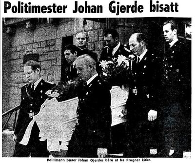 - «Politimester Johan Gjerde bisatt». Nationen 1973.12.21. Digital versjon på Nettbiblioteket.