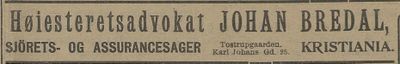 - H.r.advokat Johan Bredal død i Østlands-posten 1948.04.27. Digital versjon på Nettbiblioteket.