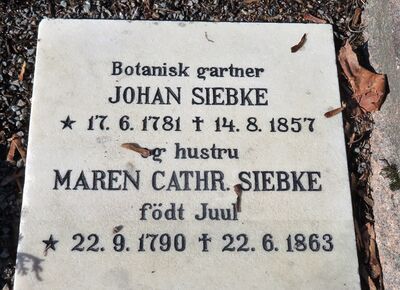 Johan Siebke er gravlagt på Gamle Aker kirkegård i Oslo. Tittelen Botanisk gartner er benyttet på gravminnet.