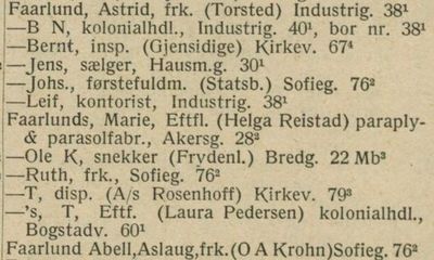 Seinere flytta Faarlund-familien til Sofies gate 76, der de blant annet er registrert i Oslo Adressebok 1927. Johannes Faarlund hadde da avansert til førstefullmektig.