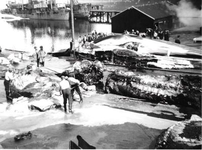 Hvalfangststasjonen i Lopra på Suderøy, Færøyene, i full drift på 1950-tallet.