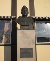 - Byste på Arnulf Øverlands grav, Vår Frelsers gravlund, utført 1970.Foto: Stig Rune Pedersen (2012).