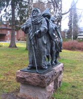 - «Blinde tiggere i Marrakech» ved Røa kirke, utført 1973.Foto: Stig Rune Pedersen (2014).