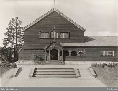 • Jakthytte for visning av norsk tradisjonell arkitektur, tegnet av Magnus Poulsson, ble flyttet til Voksenkollen (dagens Thorleif Haugs vei 4), og fra 1934 eiet og senere påbygd av Martin Mehren (1905-2002).