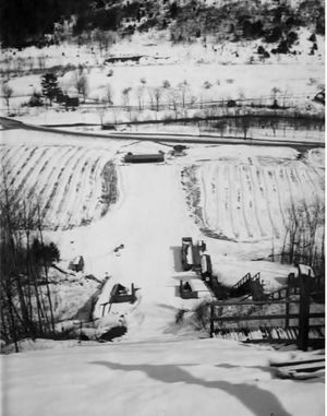 Hoppstilen i 1940. Her ser vi Emil Kvanlid fra Drammen som ble norsk mester i kombinert.