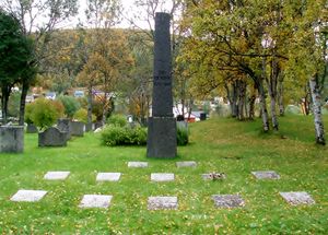 Minnehøytideligheten på Harstad gravlund] 17. mai 1946 med bekransning på gravlunden ble holdt uten at familien hadde fått heim sin kjære. Også der finnes et sterkt vitnesbyrd nedtegnet av kaptein Harald Anthonsen på familiens vegne.
