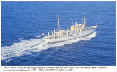 Kongen var helt klar i sin holdning til fartøyets fremtid. Var båten sunn, skulle den bygges opp igjen. Med det mente han at hadde skroget klart seg og kunne brukes, skulle kongeskipet restaureres. Med rapporten fra Veritas var det liten tvil om hva Kongen ville. Når det i tillegg viste seg at motorene stort sett hadde sluppet unna brannens herjinger, uten nevneverdige skader var, det ingen diskusjon lenger. Seinere fikk Horten verft jobben med å bygge fartøyet opp igjen.
