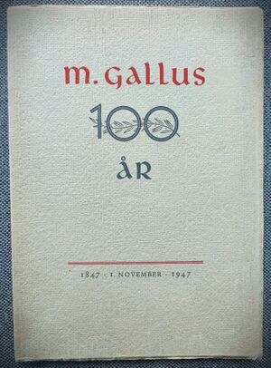 - Nyquist, Kai. M. Gallus kirurgi-instrumentmaker. En Håndverksbedrifts utviklings gjennom 100 år. Utg. [s.n.]. Kirstes Boktrykkeri. 1947. Digital versjon på Nettbiblioteket.