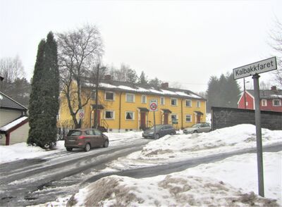 Veien har navn etter Kalbakken gård og ble navnsatt i 1952. Bebyggelsen hører til Nedre Kalbakken borettslag.