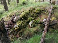 | Fundamentet til det som trolig var fjøset i Kalvberget. Størrelse 7 × 4 m². Foto: Vigdis Helene Sande (2025).