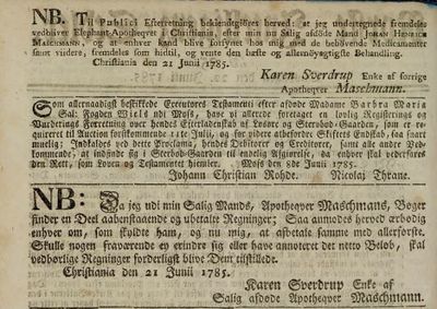 - ↑ Norske Intelligenz-Sedler 1797-08-30. Digital versjon på Nettbiblioteket.