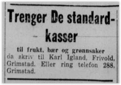 I 1974 het firmaet "Grimstad Bygg og Trelast A/S". I annonsen nevnes at det tidligere het "Frivoll Kassefabrikk og Bygg A/S".[8] Firmaet har også vært omtalt som "Fjære Kassefabrikk".[9]