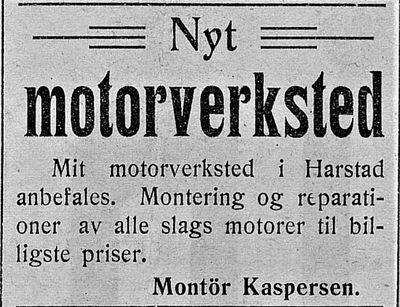 - Knutsen, Vidar: «Karl Kaspersen og motorproduksjon i Harstad» i Harstad Båtforenings medlemsblad Utror, mai 2009.