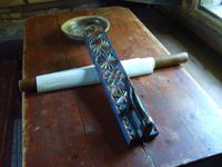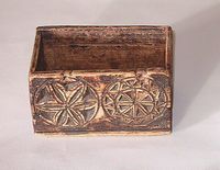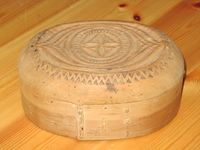 Øskjelokk med karveskurd frå Sveg i Herjedalen. Merk seksbladrosa midt på lokket.