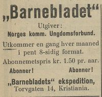 - Annonse fra Barnebladet i Hardanger Arbeiderblad 09.06.1923.jpg 1 868 × 1 784; 436 KB