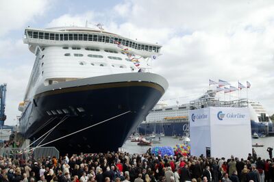 - Fra dåpen av Color Magic i 2007. Da skipet kom til Kiel, ble det møtt av en armada av småbåter og brannfartøy som sprutet vann.Foto: Svend Aage Madsen