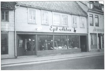 Skredder Leonhard Sommerseth, (1966), Herrefrisør Kåre Jacobsen, (1966/77), Svein Strømberg & Co A/S, (1977).