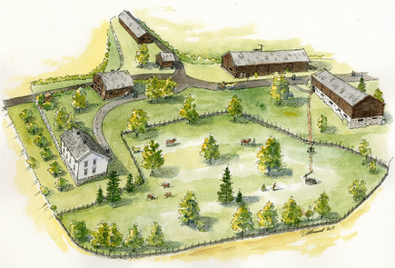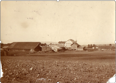Vi har selvfølgelig ikke noe bilde fra garden på Anders sin tid, men ved å bruke fantasien litt kan vi tenke oss hvordan det så ut på denne tida. Hovedbygningen ble påbegynt bygd i 1859 av Anders, så den vi ser på bildet har ikke Anders og familien bodd i. Christian fullførte bygginga 2-3 år inn i 1860-åra.